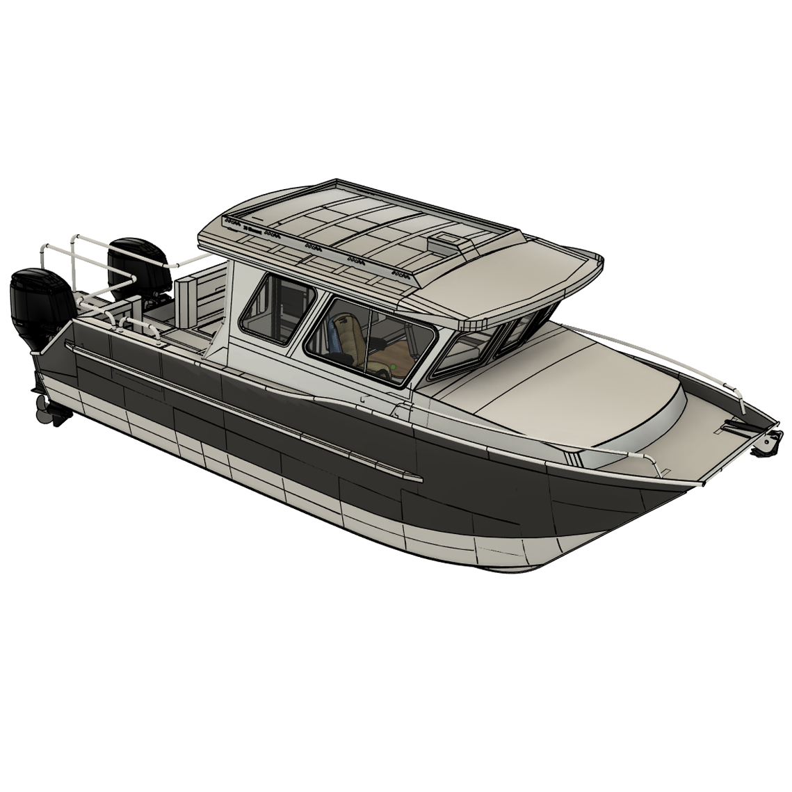 - Enclosed bow cabin offering shelter from wind, spray, and weather